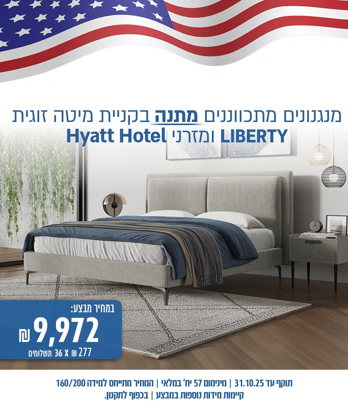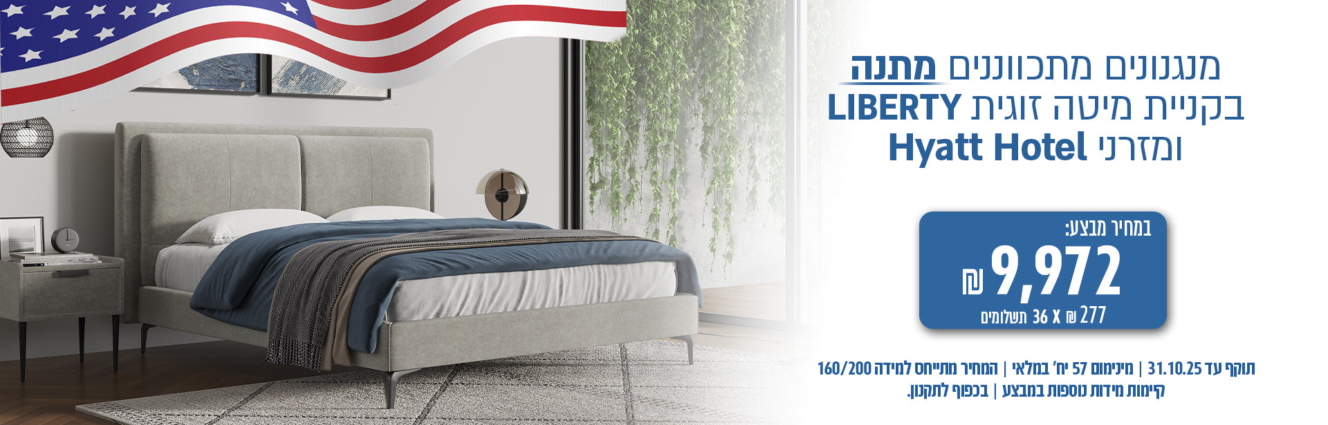 מקבלים מנגנונים מתכווננים במתנה בקניית מיטה זוגית Liberty עם מזרני Hyatt