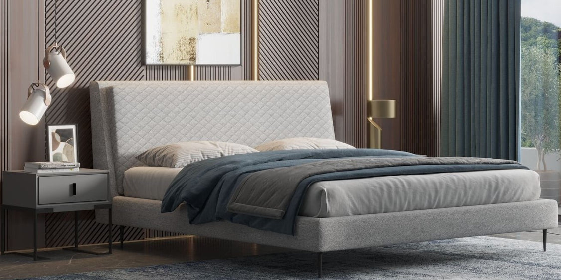 ראש מיטה מעוצב בשילוב קווים ישרים עם ראש מרופד, רך ונעים