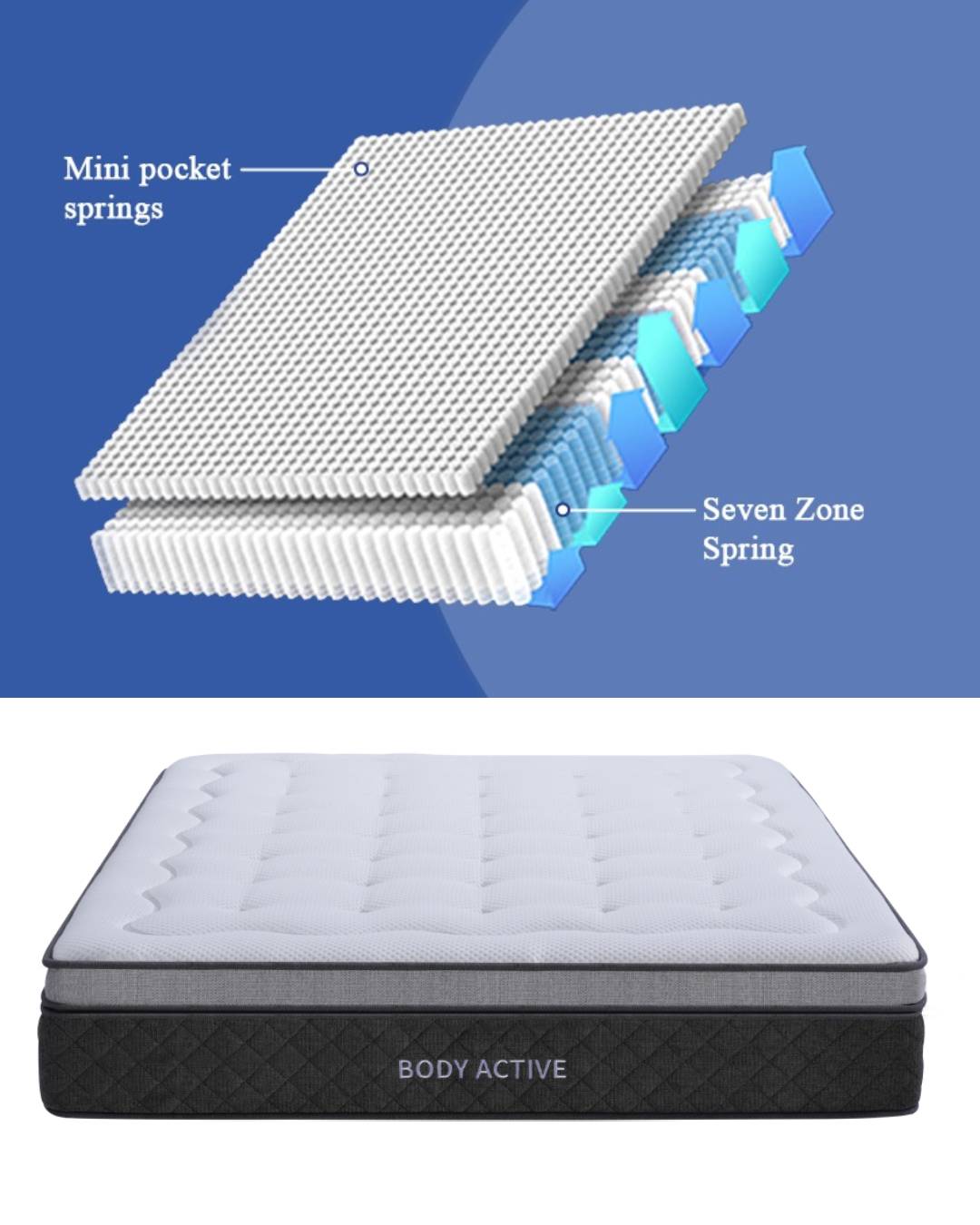 המזרן כולל מערכת קפיצי פוקט עם 7 אזורי נוחות, המספקת תמיכה מדויקת לכל חלקי הגוף. האזורים הכבדים יותר, כמו הגב והמותניים, מקבלים תמיכה ויציבות מוגברת, מה שתורם ליישור עמוד השדרה ולהפחתת לחצים במהלך השינה, מה שמעניק שנת לילה רציפה ומפנקת.